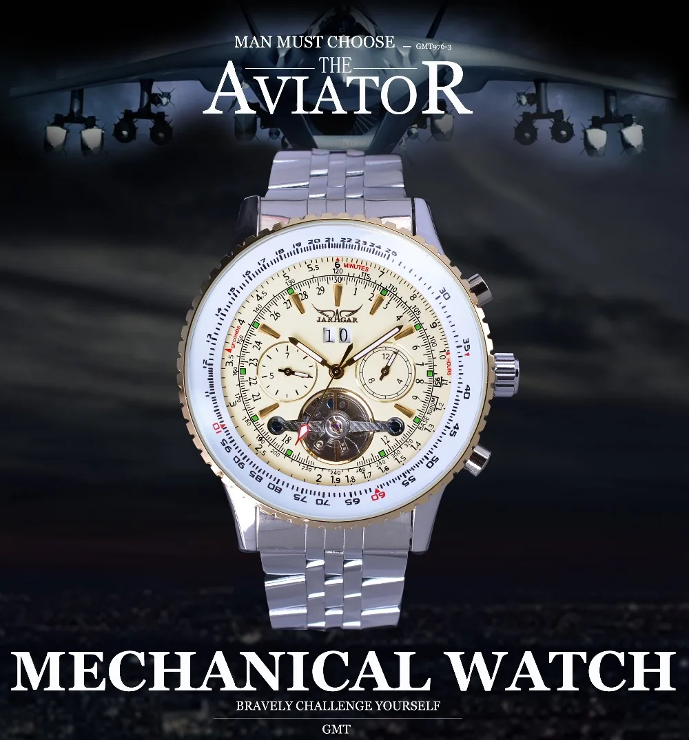 Product Name: Seria Jaragar Aviator skala wojskowa żółty elegancki Dial Tourbillon Design męskie zegarki Top marka luksusowy automatyczny zegarek na rękę