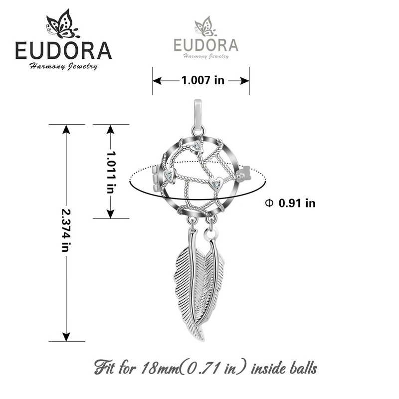 Product Name: EUDORA 18mm Dreamcatcher Feather naszyjnik dziecko ciąża klatka bola fit 18MM Chime Ball 45 cal łańcuch dla kobiety w ciąży prezent