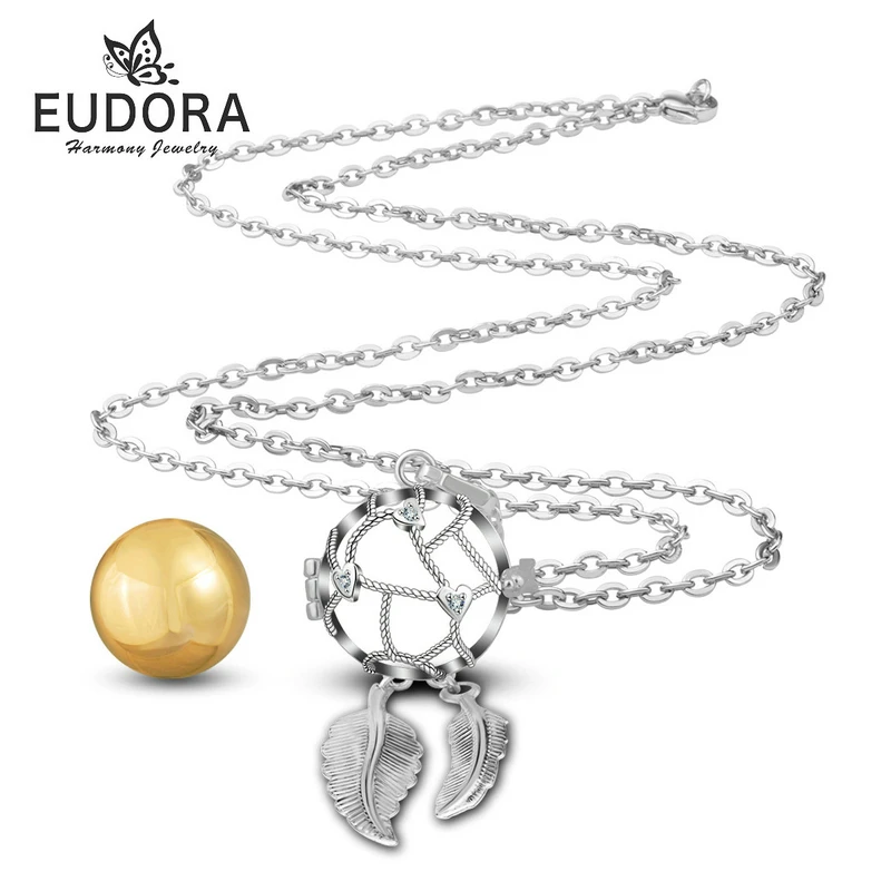 Special Offer EUDORA 18mm Dreamcatcher Feather naszyjnik dziecko ciąża klatka bola fit 18MM Chime Ball 45 cal łańcuch dla kobiety w ciąży prezent Discount 16% Today!