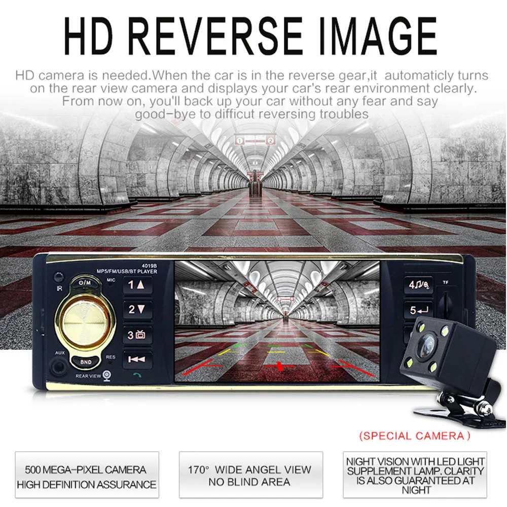 Product Name: Podofo radio samochodowe 4019B 1 jeden Din MP3 odtwarzacz samochodowy radio samochodowe USB radio aux fm stacji Bluetooth kamera cofania pilot zdalnego sterowania