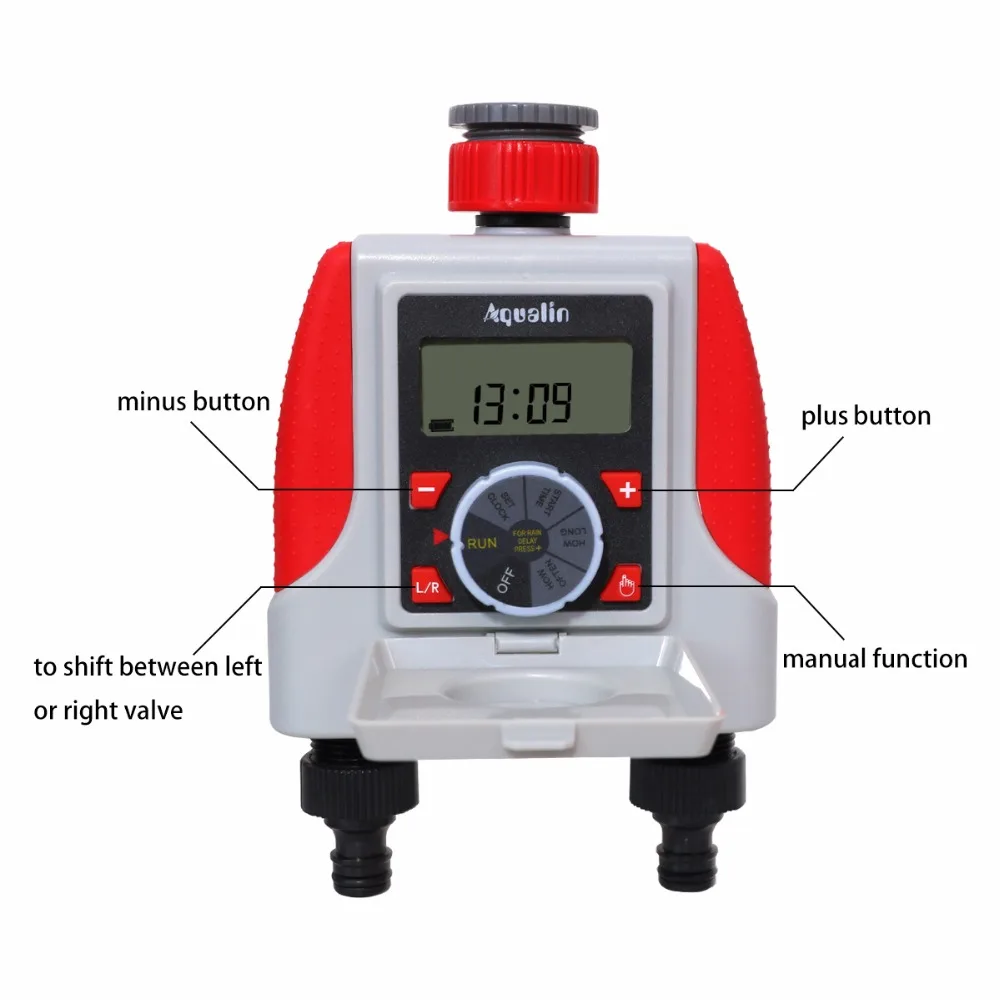 Product Name: Podwójny 2 Outlet automatyczne nawadnianie cyfrowy elektroniczny zawór elektromagnetyczny zraszacz zegar wodoodporny sterownik systemowy #21068