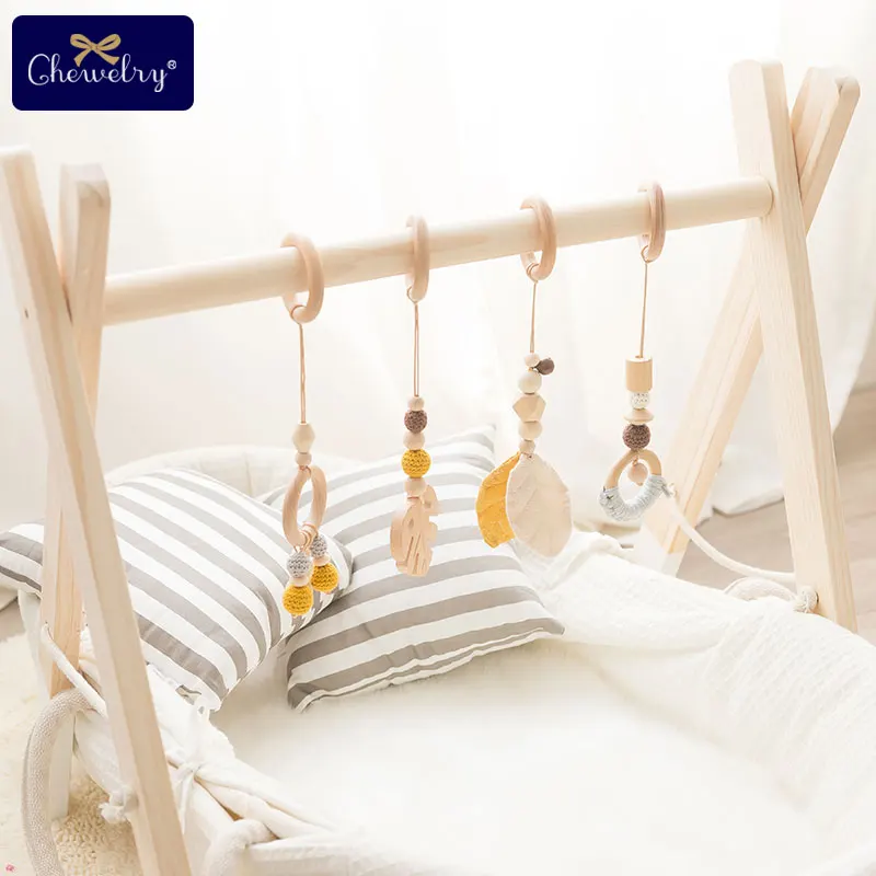 Product Name: 4pc dziecko drewniane gryzak Baby Gym Play styl skandynawski pierścień sensoryczny Pull buk pierścień koraliki szydełkowe artykuły dziecięce grzechotka do kołyski zabawki