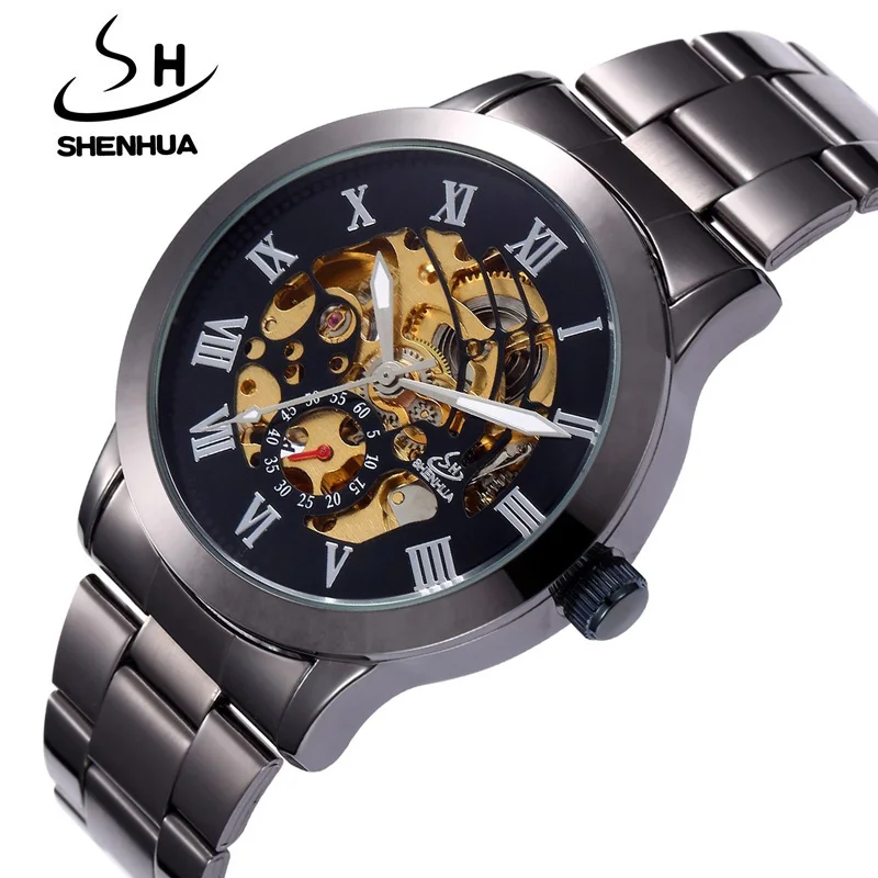 Product Name: SHENHUA znane marki luksusowe czarne złoto automatyczna sprzedaż wiatr zegarki mężczyźni wodoodporna, odporna na wstrząsy mechaniczny szkielet zegarek na rękę