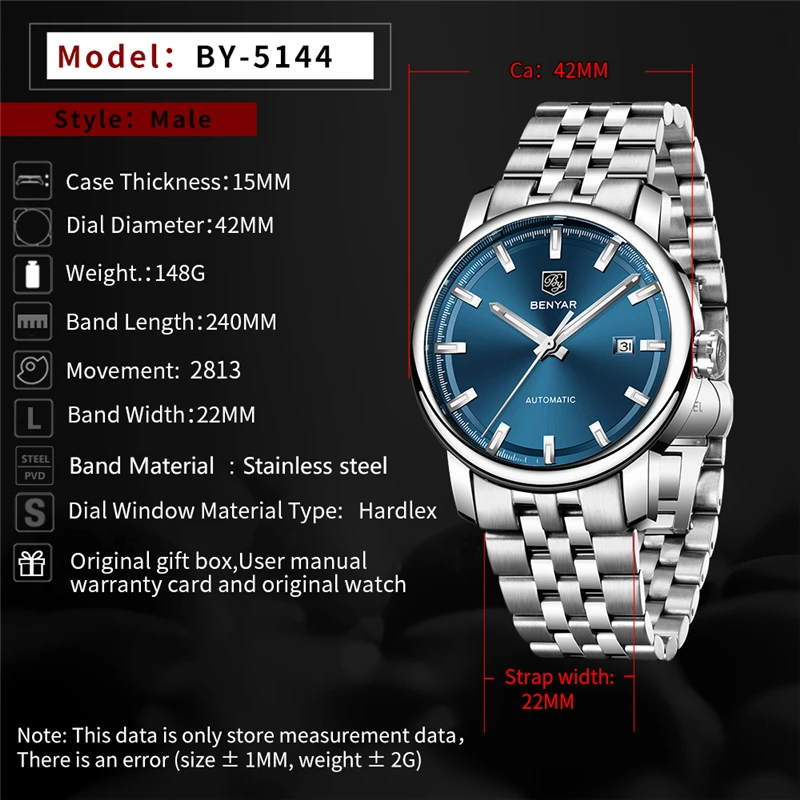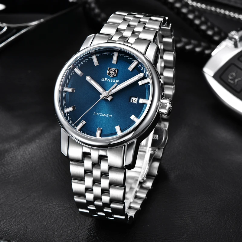Special Offer 2019 nowy modny top luksusowa marka skórzany zegarek automatyczny mężczyzna zegarek mężczyźni mechaniczne stalowe zegarki Relogio Masculino BENYAR Discount 44% Today!