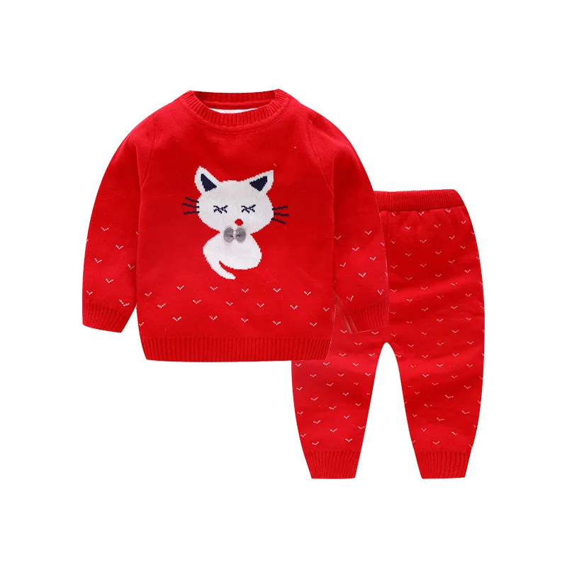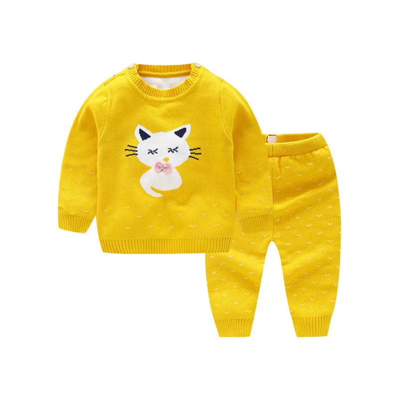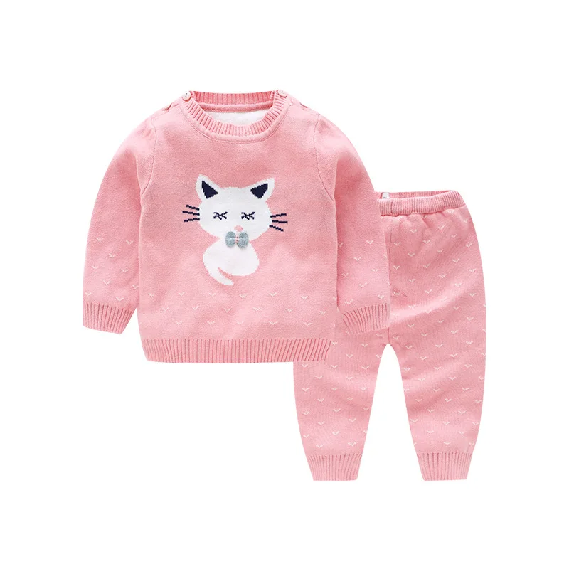 Special Offer Piękny kot noworodka dziewczynek ubrania zestawy 2 sztuk długi rękaw odzież z dzianiny kurtka + spodnie niemowlę ubranka dla dziewczynki jesień Bbay zestaw Discount 6% Today!