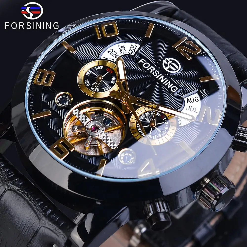 Product Name: Forsining Tourbillion czarny złoty fala wybierania mody casualowy wzór mężczyźni oglądać najlepsze marki mechaniczny automatyczny zegarek na rękę dla mężczyzn
