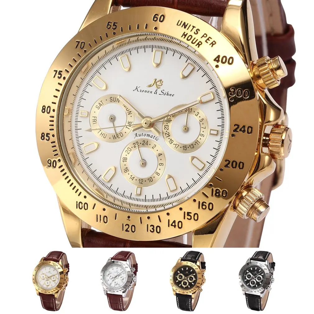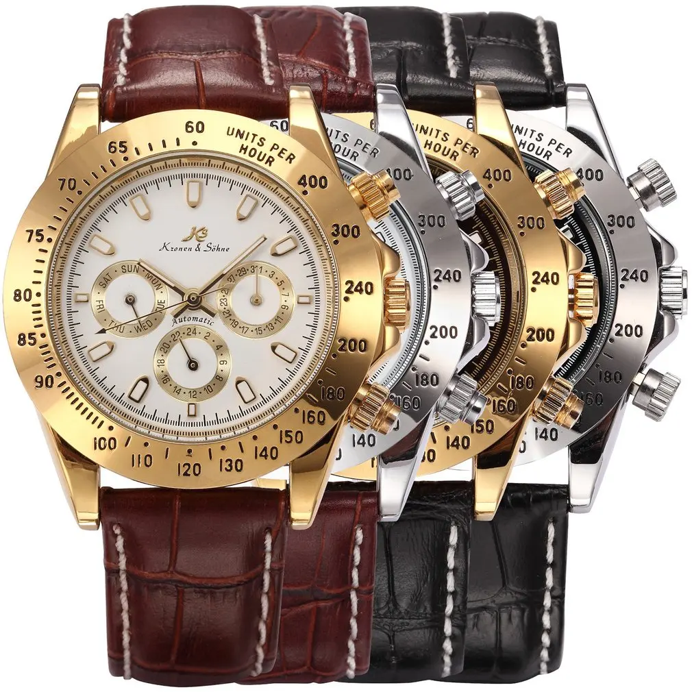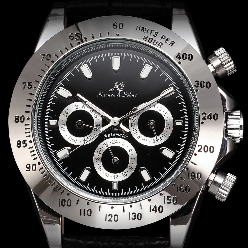 Special Offer Ks Imperial kalendarz dzień wyświetlanie daty męski zegar Relojes czarny skórzany pełny stalowy automatyczny samonakręcający mechaniczny zegarek KS165 Discount 30% Today!