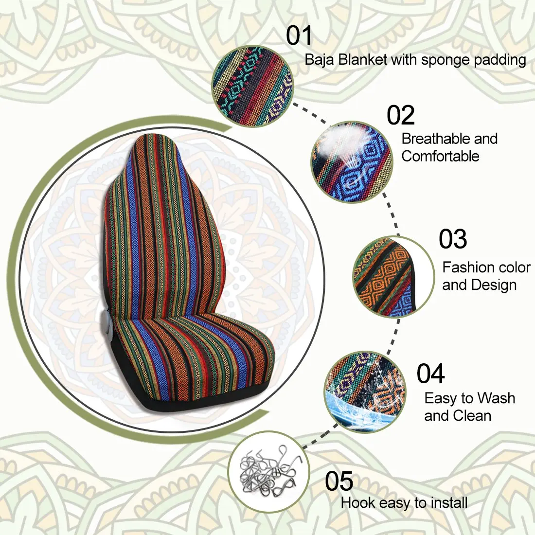 Product Name: Uxcell 7 sztuk uniwersalny wielokolorowy kocyk Baja w stylu etnicznym trwały pokrowiec na fotel samochodowy do samochodu Auto Automotive Protector
