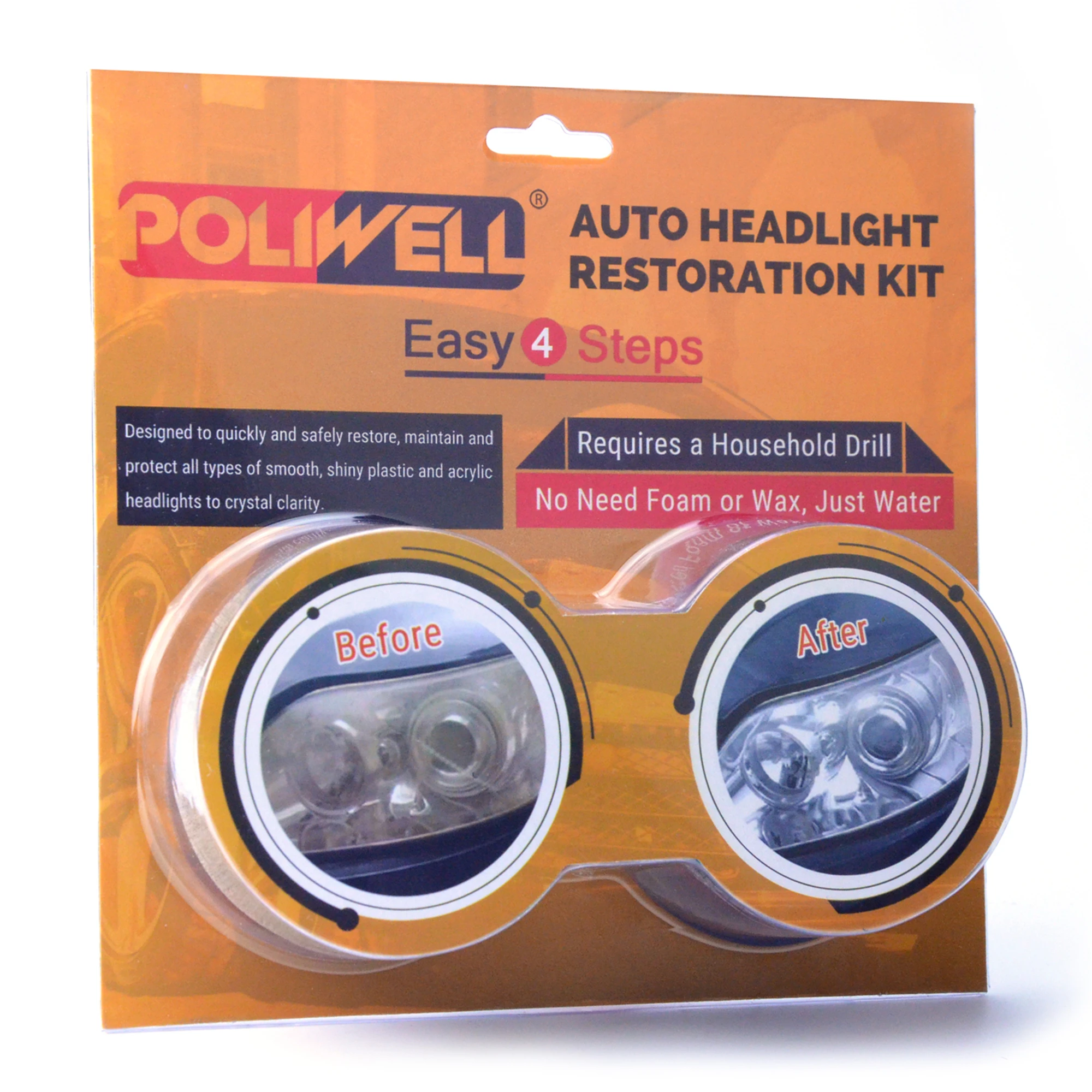 Product Name: POLIWELL 3 Cal DIY reflektory samochodowe polerowanie zestaw do renowacji światła samochodowe polerowanie reflektorów zestaw naprawczy do wiertarki elektrycznej