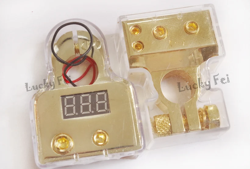 Product Name: 2 unids 0 4 8 Awg para złotych cyfrowych zacisków zacisk akumulatora z wbudowanym LED cyfrowy wyświetlacz samochodowy zacisk akumulatora