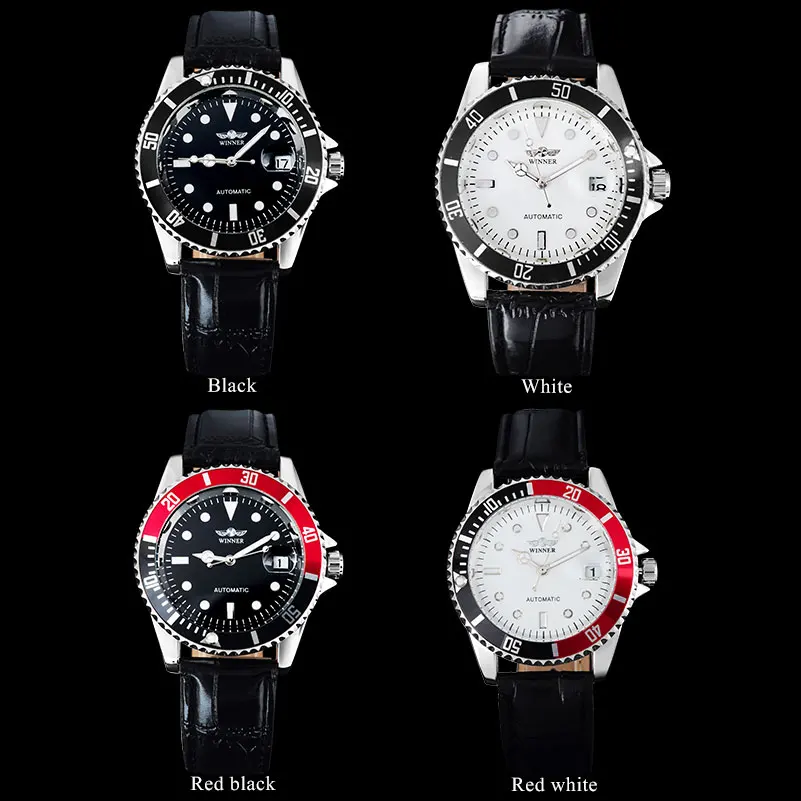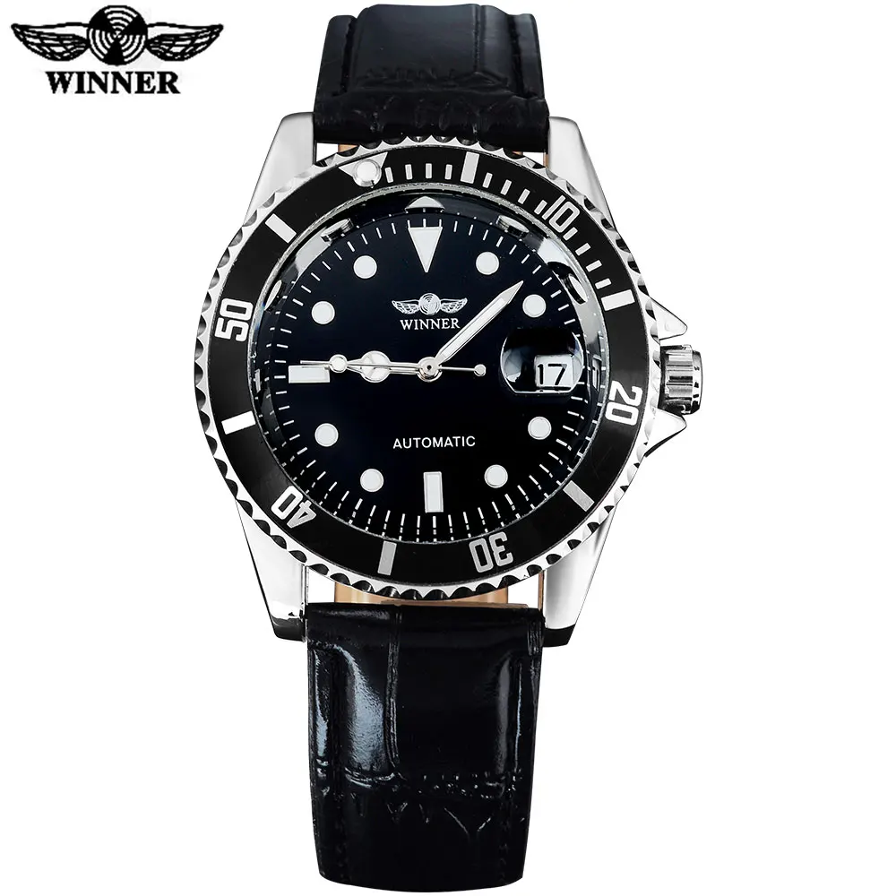 Product Name: 2018 zwycięzca popularne marki mężczyźni luksusowe automatyczne auto wiatr zegarki skrzynka kreatywna czarna tarcza mężczyzna skórzany pasek Relogio masculino
