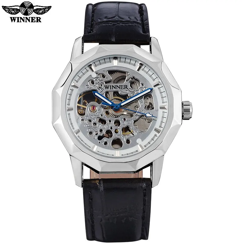 Product Name: TWINNER moda marka zegarki mechaniczne dla mężczyzn skórzany pasek casual męska automatyczny szkielet srebrny futerał zegarki relogio masculino