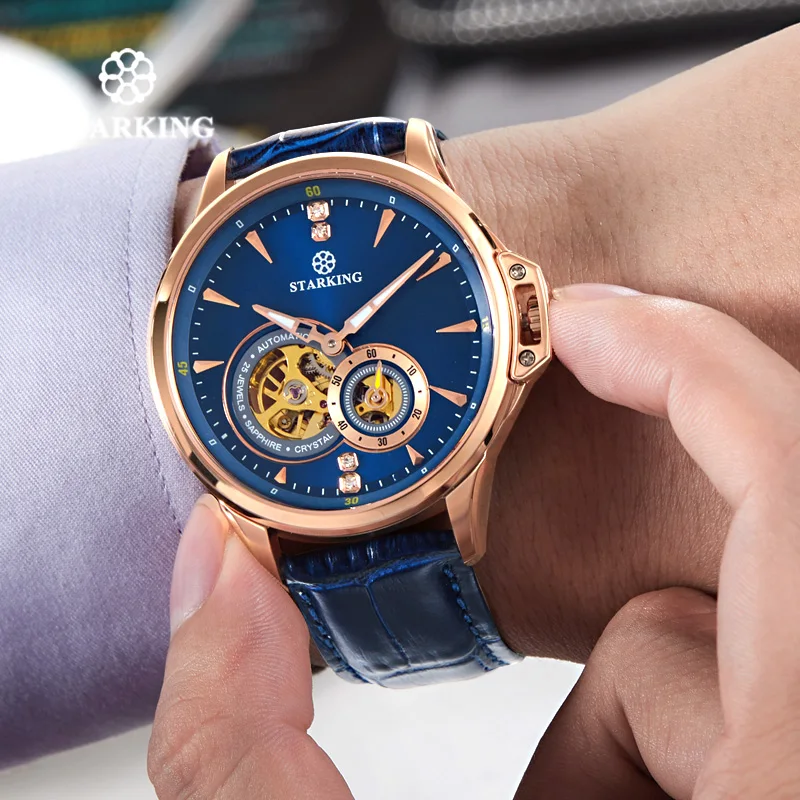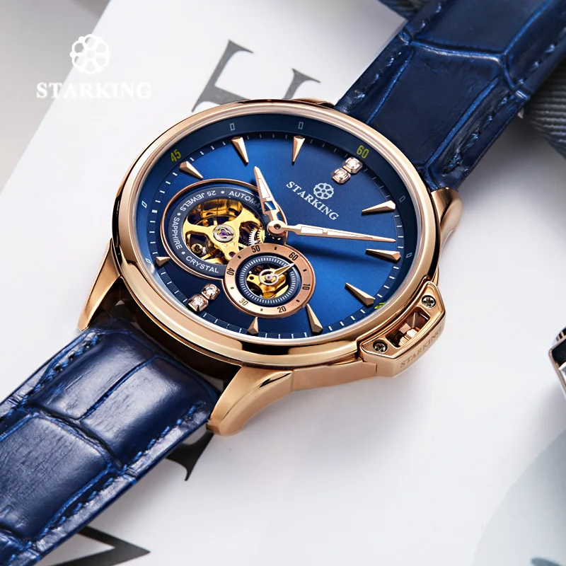 Special Offer STARKING niebieskie w stylu retro męskie zegarki Top marka luksusowa moda męski zegarek Sapphire automatyczny mechaniczny zegarek Relogio Masculino Discount 45% Today!
