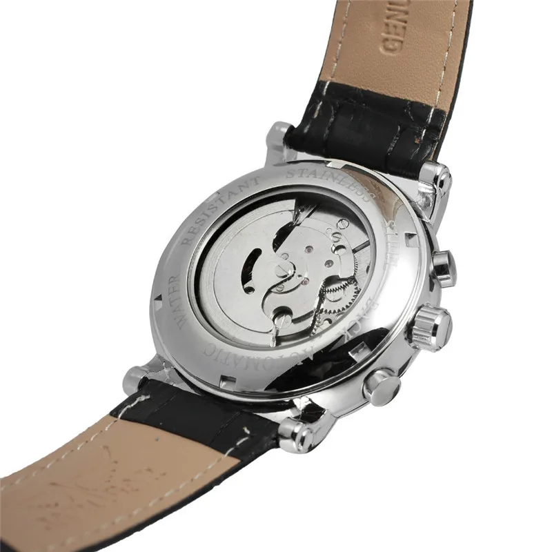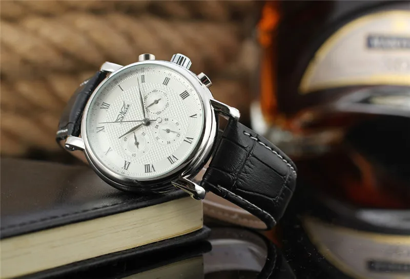 Product Name: JARAGAR wielofunkcyjny 6 Pin mężczyźni automatyczne mechaniki okrągły Dial zegarek na rękę modne męskie pasek skórzany na co dzień zegarek