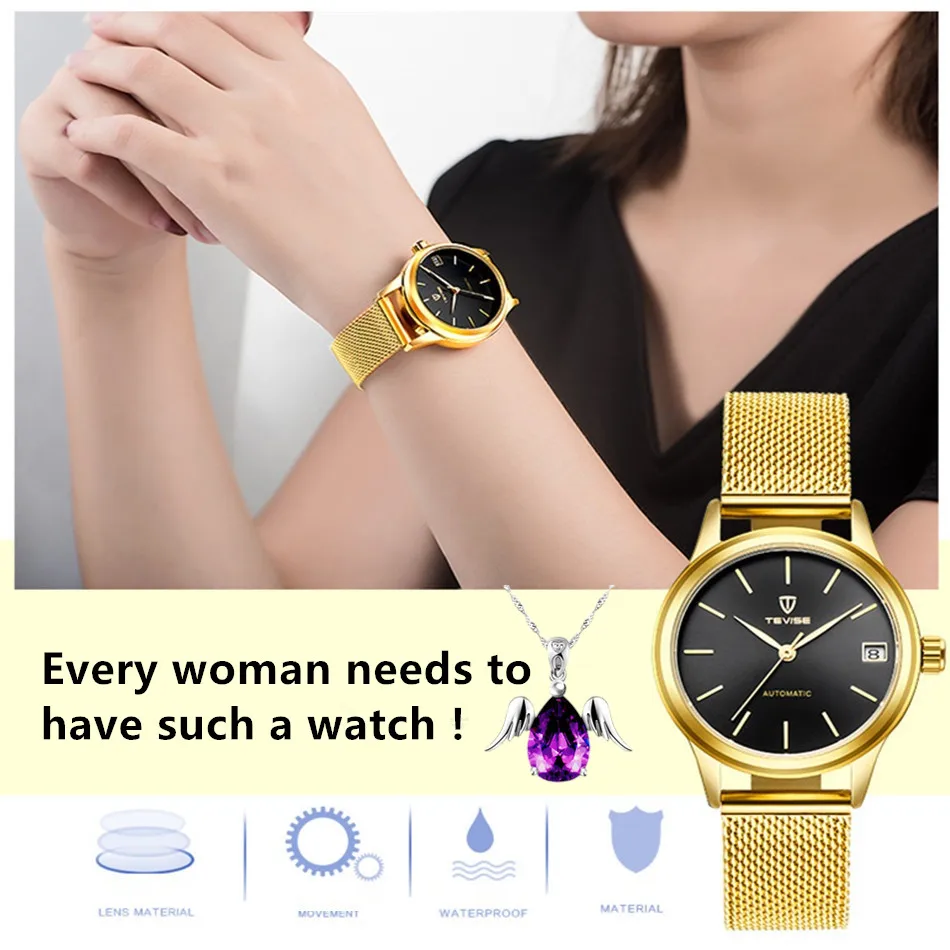 Product Name: Luksusowa marka TEVISE zegarki damskie automatyczna bransoleta mechaniczna zegarek damski wodoodporna stalowa sukienka zegarki dla kobiet