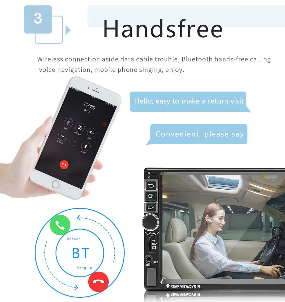 Product Name: Podofo Radio samochodowe 2din 7 \"HD Autoradio Bluetooth Mirrorlink ekran dotykowy MP5 odtwarzacz USB FM AUX wsparcie widok z tyłu kamera 7018B