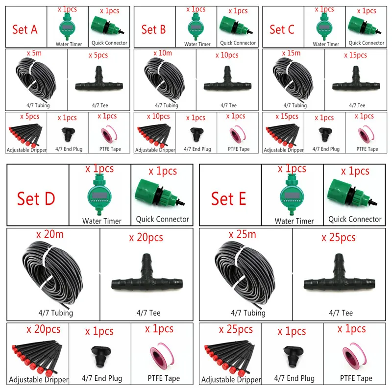 Product Name: 10 15 25m wąż ogrodowy Drippers zestaw z czasowy wyłącznik przepływu wody DIY nawadniania kropelkowego system roślina automatyczne własny ogród mikro podlewanie E211