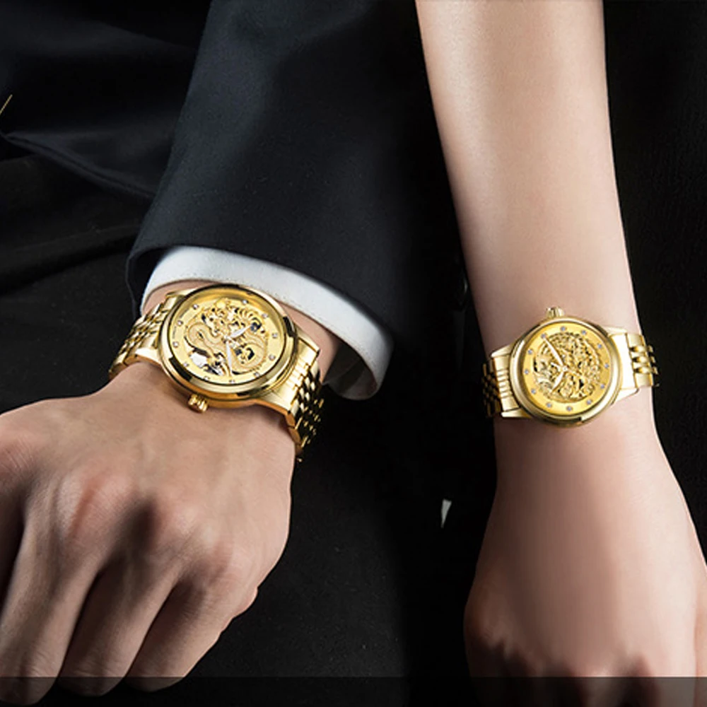 Special Offer TEVISE luksusowy złoty smok wodoodporne automatyczne mechaniczne zegarki męskie złote zegarki para męska zegarek Relogio Masculino Discount 55% Today!