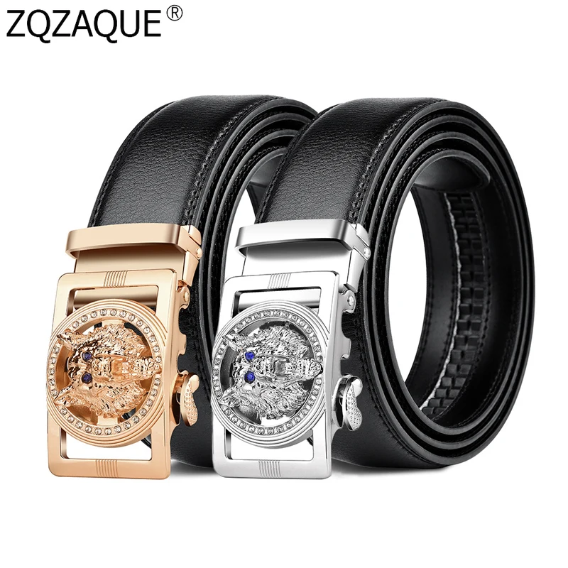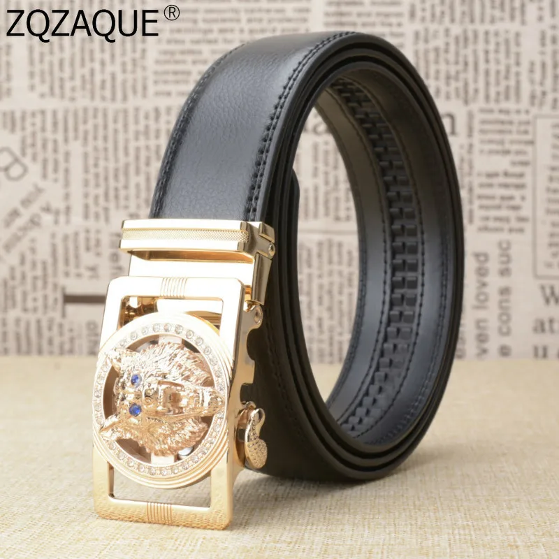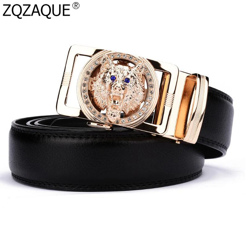 Special Offer Wysokiej jakości 100% oryginalne pasy skórzane dla mężczyzn Jeans czarny brązowy Cowskin Metal wilk automatyczne klamry markowy pasek pas biodrowy Discount 0% Today!
