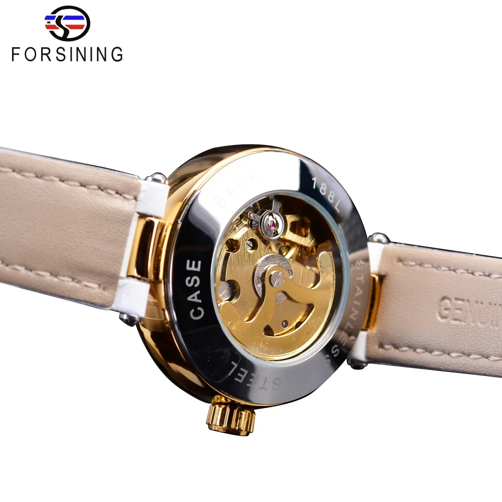 Product Name: Forsining biały złoty mechaniczny automatyczny luksusowa tarcza marki Lady Wrist zegarek skeleton zegar kobiety oryginalna skórzana sukienka zegarki
