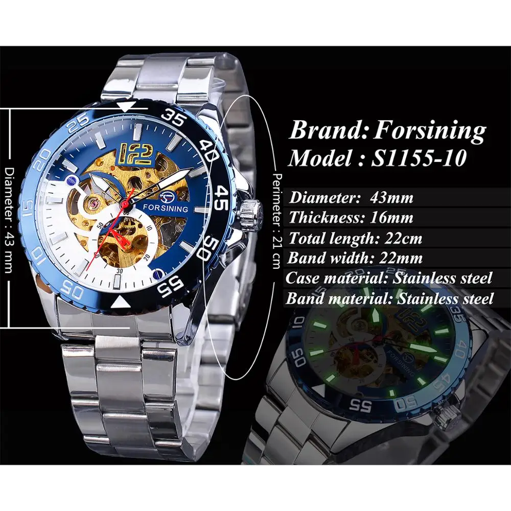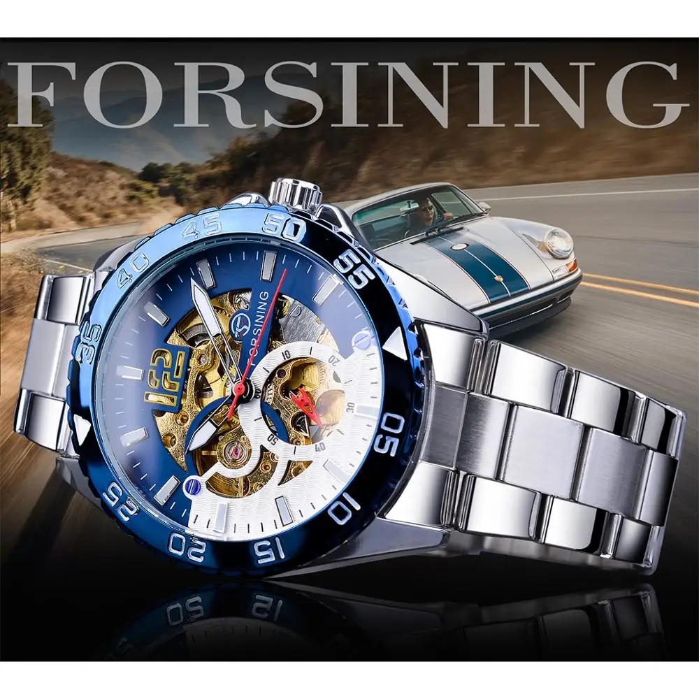 Product Name: Forsining mechaniczny męski zegarek Top marka luksusowy automatyczny mężczyzna zegarek ze stali nierdzewnej z motywem szkieletu niebieska tarcza wodoodporny zegar