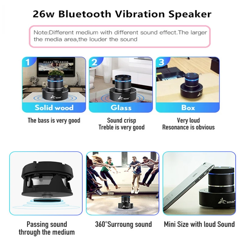 Product Name: Adin 26W głośnik wibracyjny Bluetooth Bass przenośne głośniki bezprzewodowy rezonans dotykowy Stereo Subwoofe NFC zestaw głośnomówiący z mikrofonem
