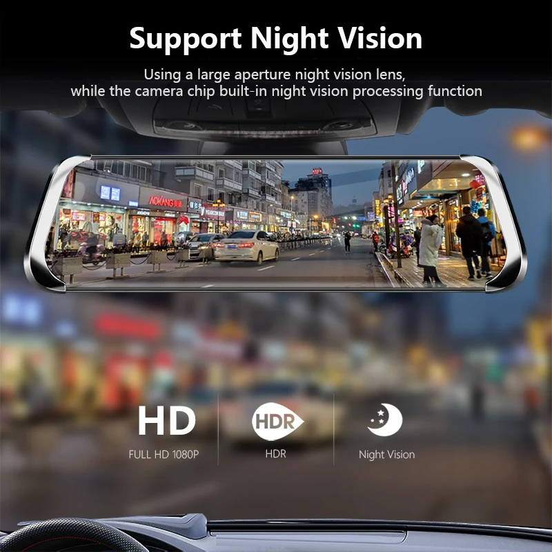 Product Name: Jansite 10 \"nagrywarka samochodowa z ekranem dotykowym Stream media kamera na deskę rozdzielczą podwójny obiektyw kamera przednia kamera 1080P wideorejestrator 1080P lusterko wsteczne