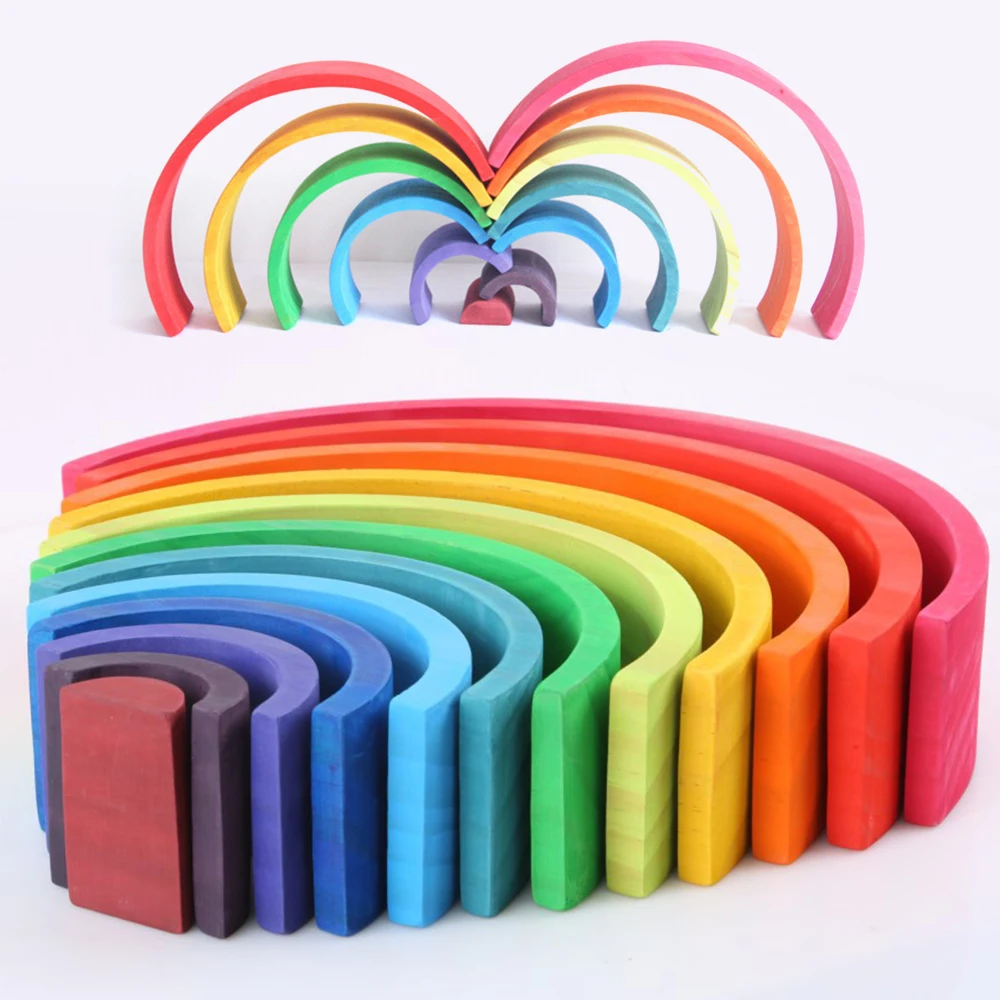 Special Offer 12 sztuk partia Rainbow bloki zabawki dla dzieci drewniane Rainbow Stacker zagnieżdżanie Blocker kreatywny Montessori klocki edukacyjne zabawki Discount 39% Today!