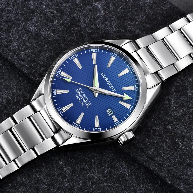 Special Offer Corgeut luksusowa tarcza 41mm męski zegar niebieska tarcza automatyczny kalendarz daty mechaniczny szafirowy kryształ SS Luminous męski zegarek na rękę Discount 39% Today!
