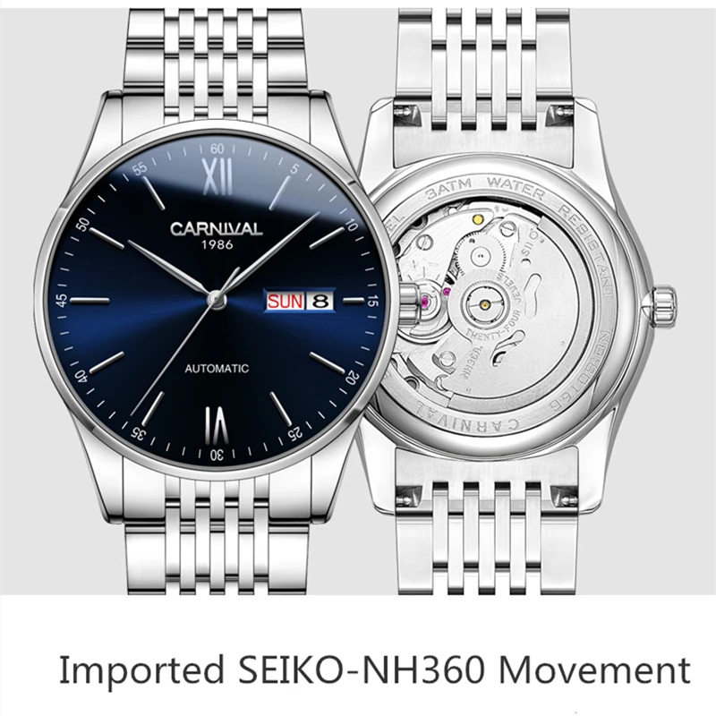 Product Name: Karnawał męskie zegarki Top marka luksusowy automatyczny zegarek mechaniczny mężczyźni pełna stal biznes Sport Wrist Watch Relogio Masculino