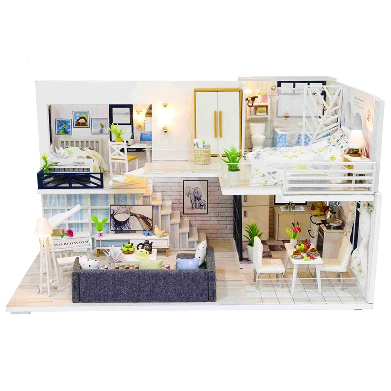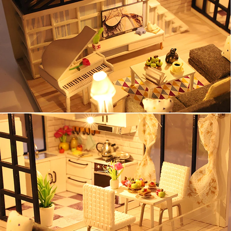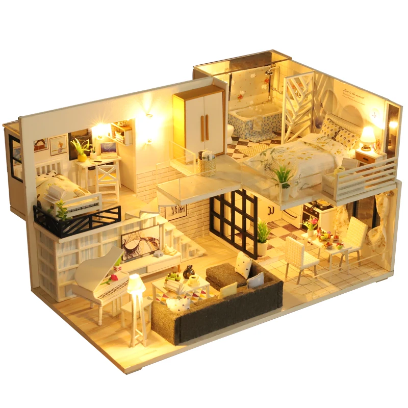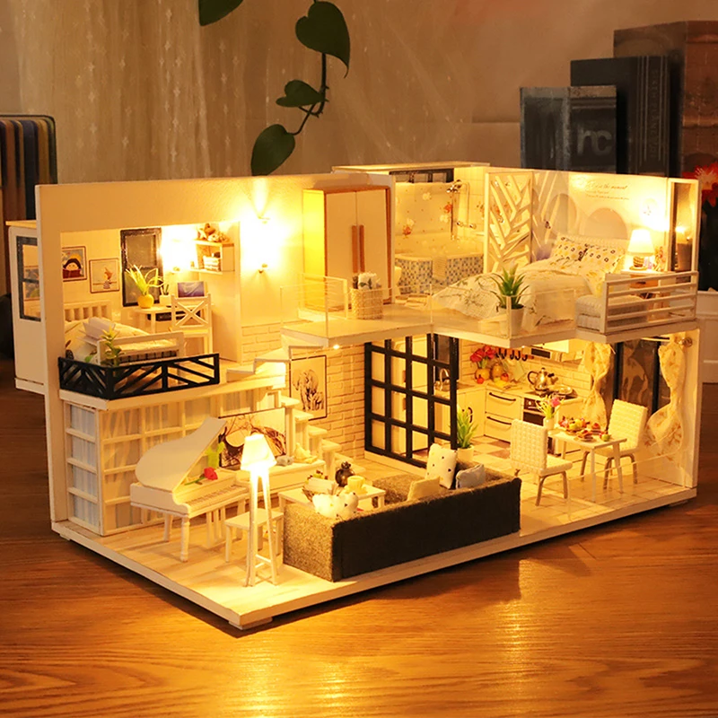Special Offer Meble domowe dla lalek drewniany miniaturowy zestaw DIY z osłoną przeciwpyłową pozytywka złożyć rzemiosło zabawka najlepszy prezent urodzinowy dla dzieci dziewczynka Discount 47% Today!
