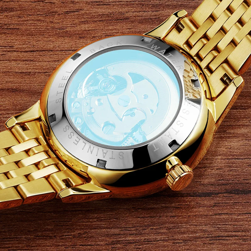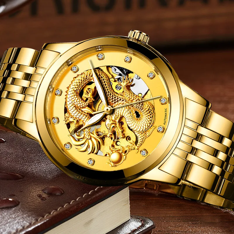 Product Name: FNGEEN 3D rzeźba szkielet ze stali nierdzewnej pasek przezroczysty Case Hollow złoty męskie zegarki Top marka luksusowe automatyczne mechaniczne