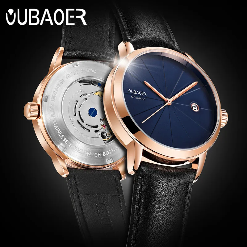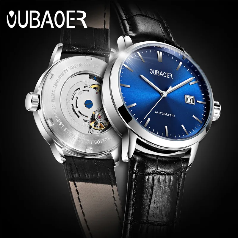 Product Name: 2019 mężczyźni oglądać oryginalne OUBAOER Top marka luksusowe automatyczne zegarek mechaniczny zegarek skórzany zegarki wojskowe zegar mężczyźni Relojes Masculino