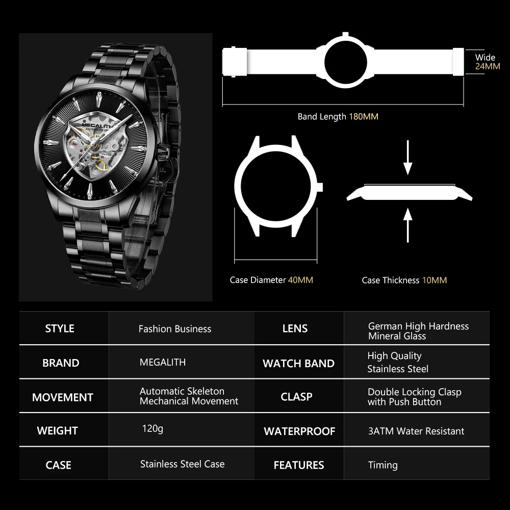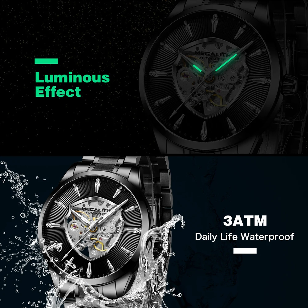Product Name: MEGALITH automatyczne mechaniczne zegarki męskie moda wodoodporne sportowe męskie zegarki luksusowe ze stali nierdzewnej zegar Relogio Masculino 8210M