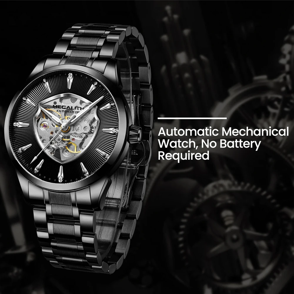 Special Offer MEGALITH automatyczne mechaniczne zegarki męskie moda wodoodporne sportowe męskie zegarki luksusowe ze stali nierdzewnej zegar Relogio Masculino 8210M Discount 80% Today!