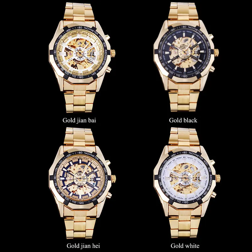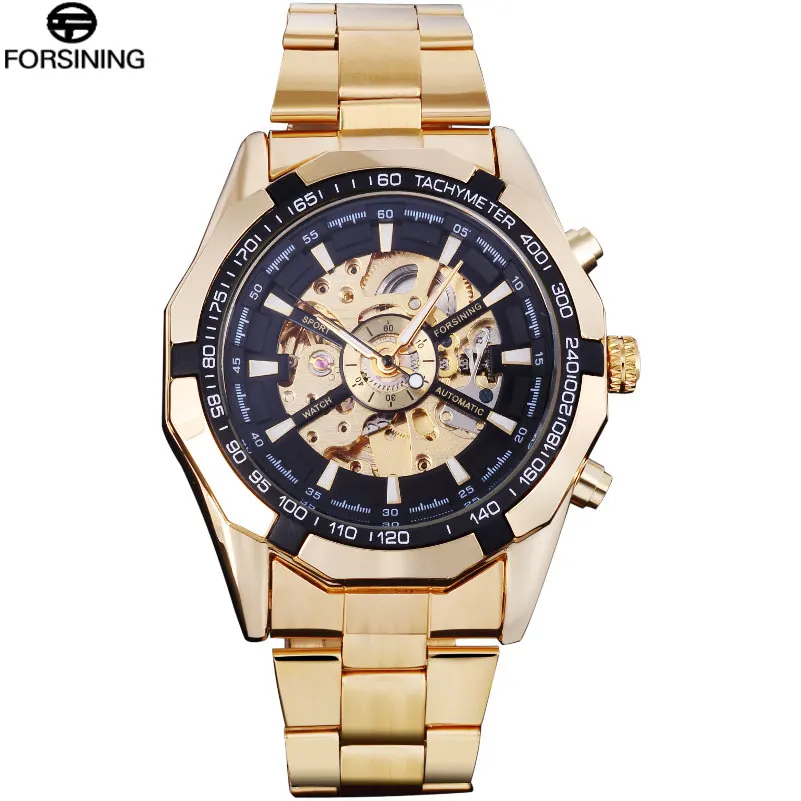 Product Name: FORSINING marka mężczyźni automatyczny zegarek luksusowy szkielet mechaniczne zegarki męskie złoty zegar ze stali nierdzewnej Relogios Masculino