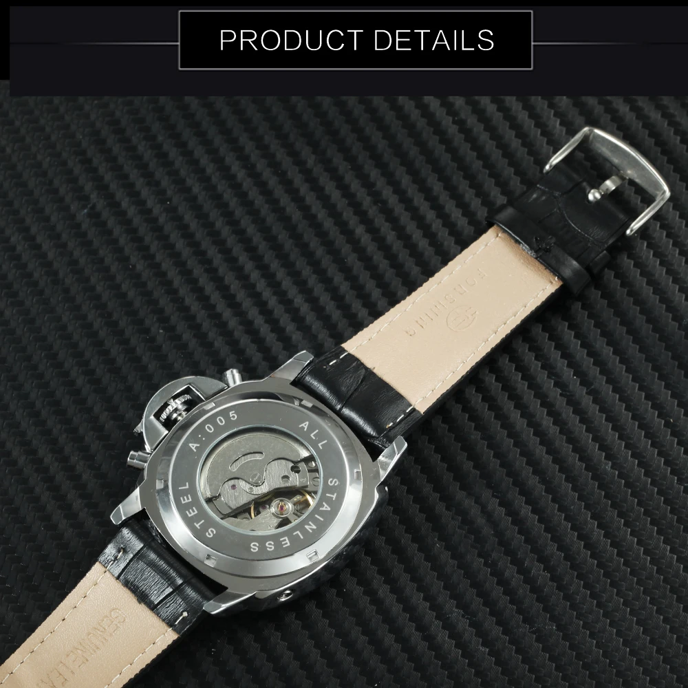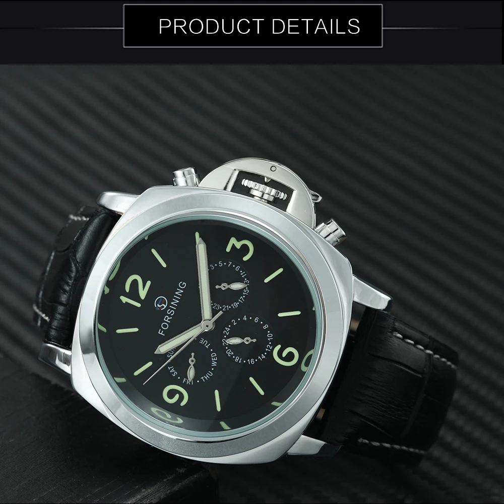Product Name: 2019 nowy FORSINING zegarek wielofunkcyjny mężczyźni Auto mechaniczny skórzany pasek świetliste dłonie pracy sub tarcze dorywczo męski zegarek