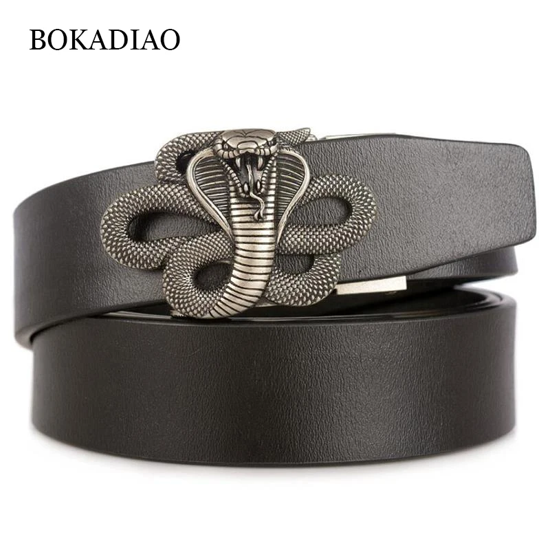 Special Offer BOKADIAO męski pasek z prawdziwej skóry w stylu vintage wąż automatyczny klamra czarny Cowskin pas luksusowa projektanta pasy dla mężczyzn wysokiej jakości Discount 35% Today!