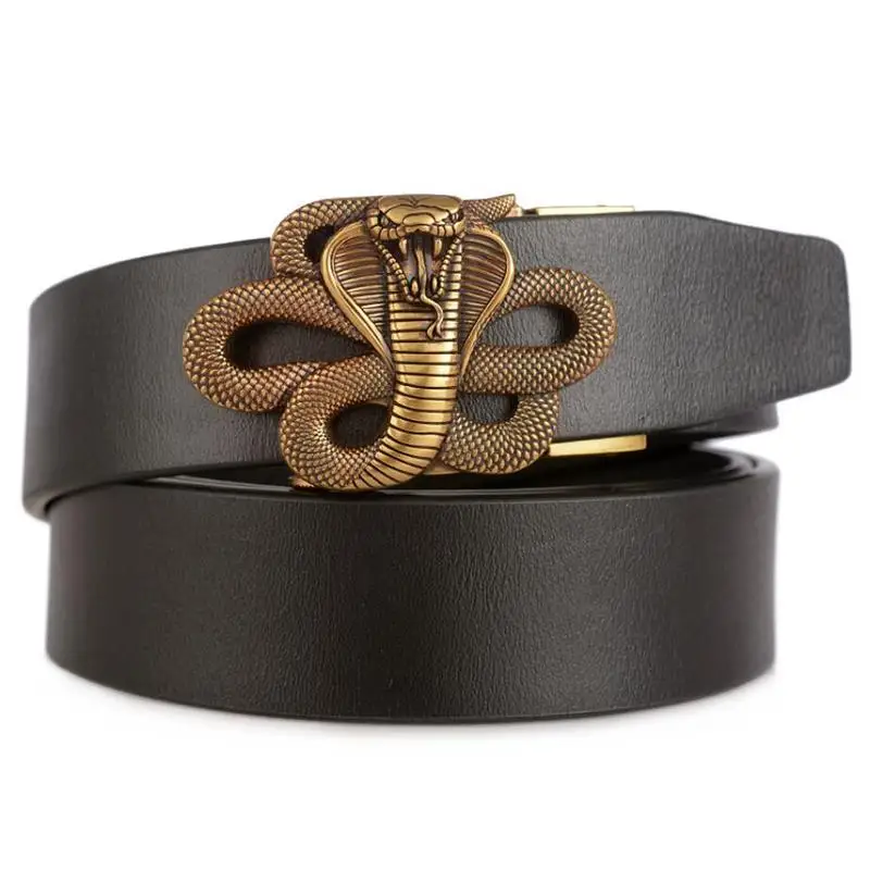 Product Name: BOKADIAO męski pasek z prawdziwej skóry w stylu vintage wąż automatyczny klamra czarny Cowskin pas luksusowa projektanta pasy dla mężczyzn wysokiej jakości