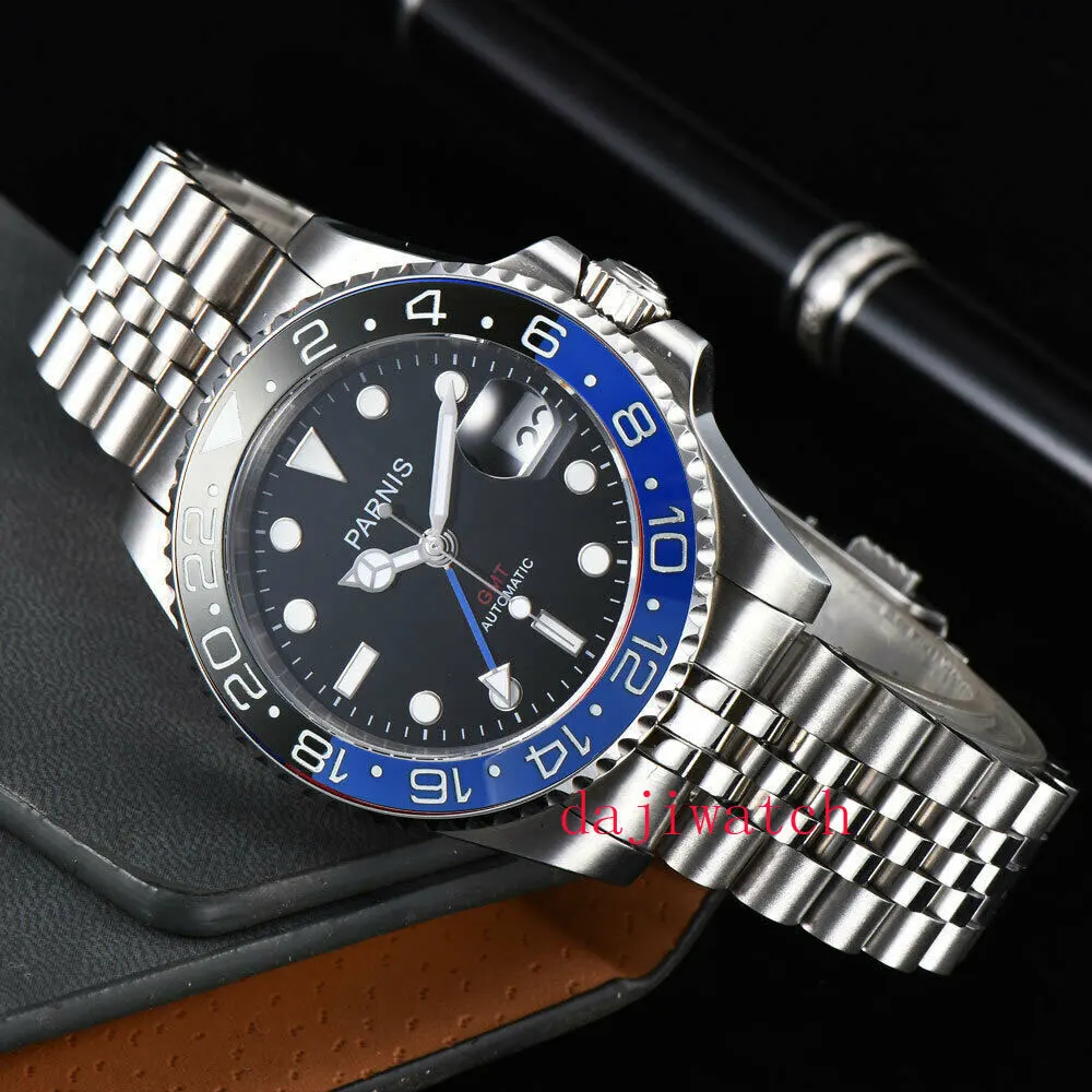 Special Offer Parnis40mm szafirowy kryształ super jasne świecące ceramiczna ramka GMT automat data dorywczo męski zegarek sportowy czarny niebieski ramka Discount 38% Today!