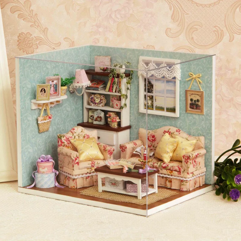 Special Offer DIY Handmake drewniany domek dla lalek miniaturowy zestaw Reunion z szczęściem śliczne meble do sypialni Model dziewczyna Doll House Room Box Discount 40% Today!