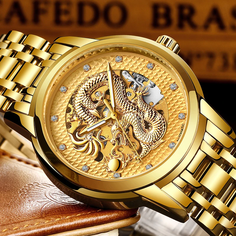 Product Name: Dragon Skeleton automatyczne mechaniczne zegarki dla mężczyzn Wrist Watch stalowy pasek złoty zegar 30m wodoodporny zegarek męski