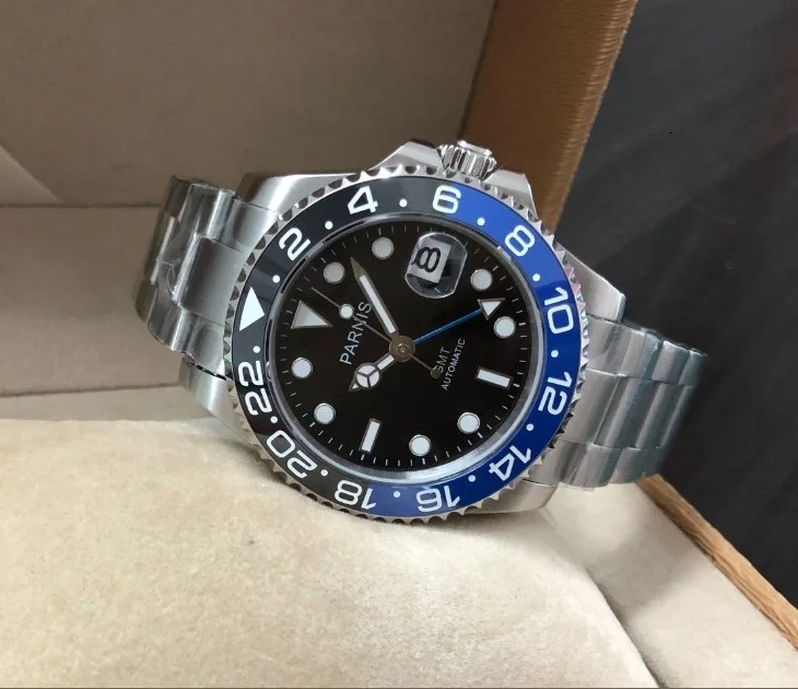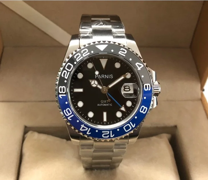 Special Offer 40mm PARNIS szafirowe GMT automatyczne maszyny ruch luminous zegarki męskie czarny i niebieski ceramiczna ramka szkiełka zegarka xjp230A Discount 50% Today!