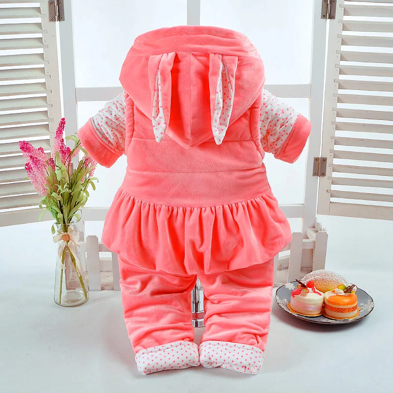 Special Offer Nowy jesienno zimowy zestaw ubranek dla dziewczynki styl królika dodatkowa warstwa bawełny wyściełane ciepłe 0 2T noworodka dziecko 3 sztuk zestaw Walking Dress Discount 0% Today!