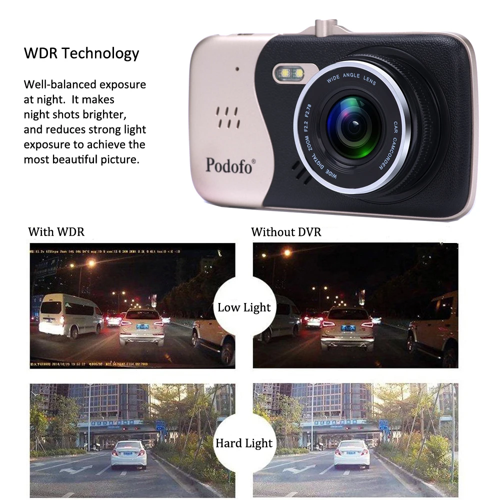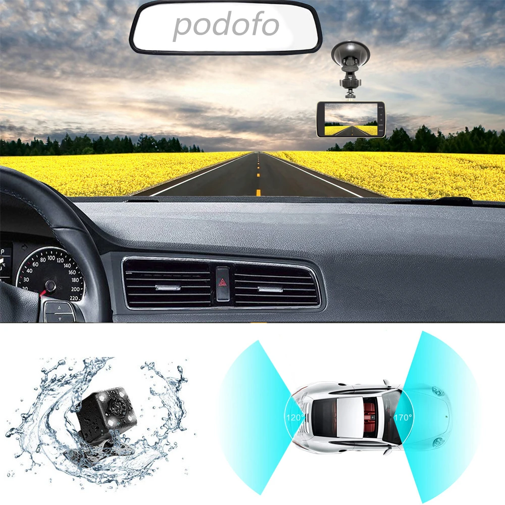 Special Offer Podofo Novatek 96658 4.0 Cal ekran IPS podwójny obiektyw kamera samochodowa Full HD 1080P pojazdu wideorejestrator kamera na deskę rozdzielczą Discount 25% Today!