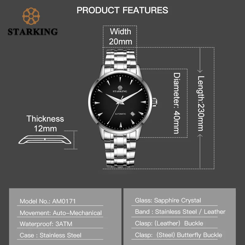 Product Name: STARKING zegarek mechaniczny mężczyźni Miyota Movt zegarek ze stali nierdzewnej Sapphire automatyczne self wiatr mężczyźni oglądać Relogio 3ATM AM0171