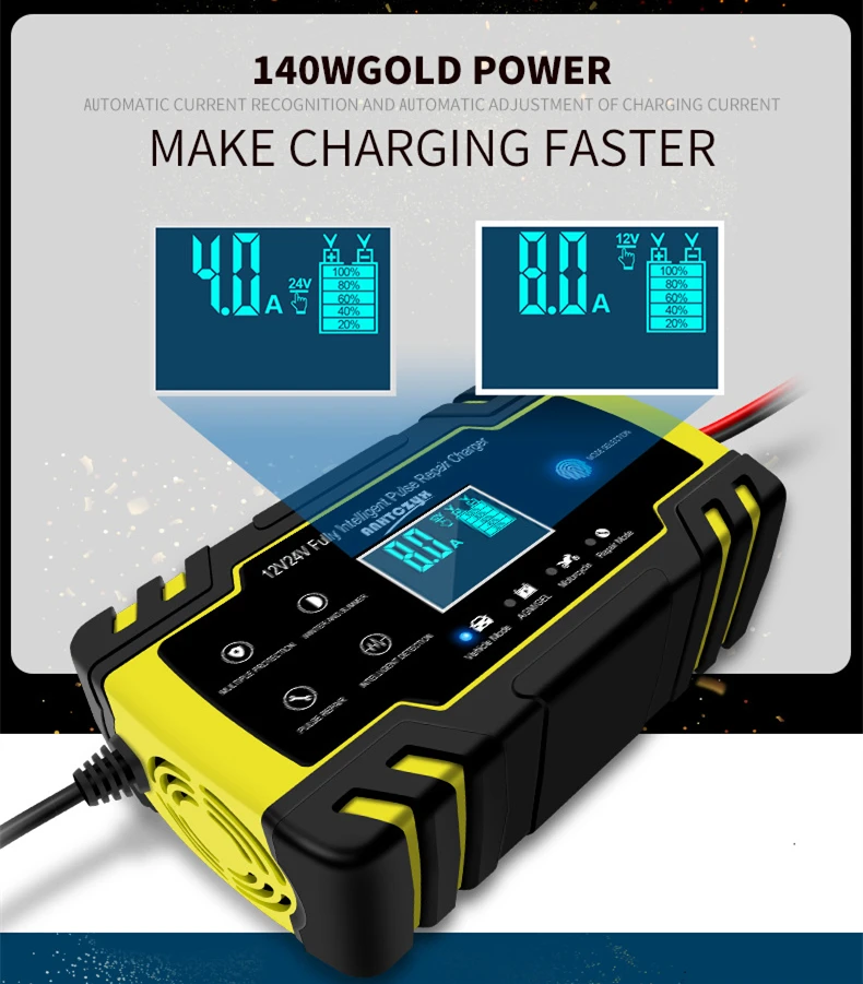 Product Name: Automatyczna inteligentna ładowarka do akumulatora 12 V 8A 24 V 4A opiekun samochodowy motocykl skuter głębokiego cyklu AGM GEL VRLA LiFePo4 ładowarka