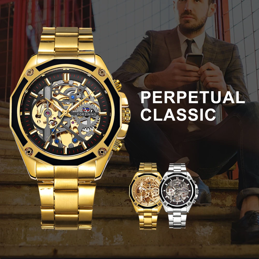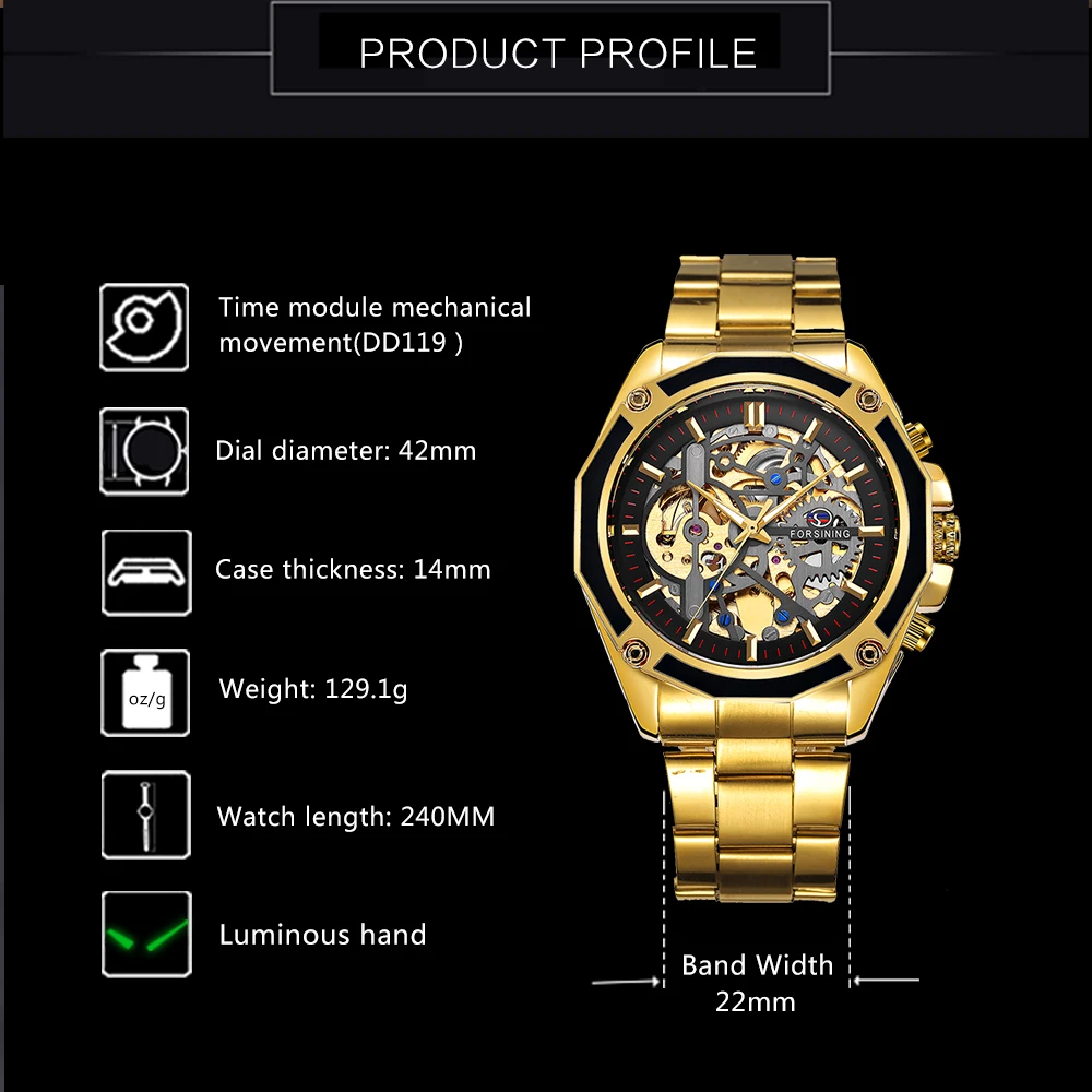 Product Name: FORSINING zegarek biznesowy mężczyźni Auto mechaniczne męskie zegarki Top marka luksusowe złota stal szkielet HIP HOP Punk zegarek