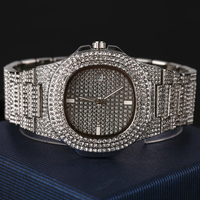 Special Offer Męskie zegarki moda diament automatyczne zegarek quartz z datą mężczyzn złota ze stali nierdzewnej Hip Hop męskie zegarki Top marka ekskluzywny zegarek Discount 30% Today!