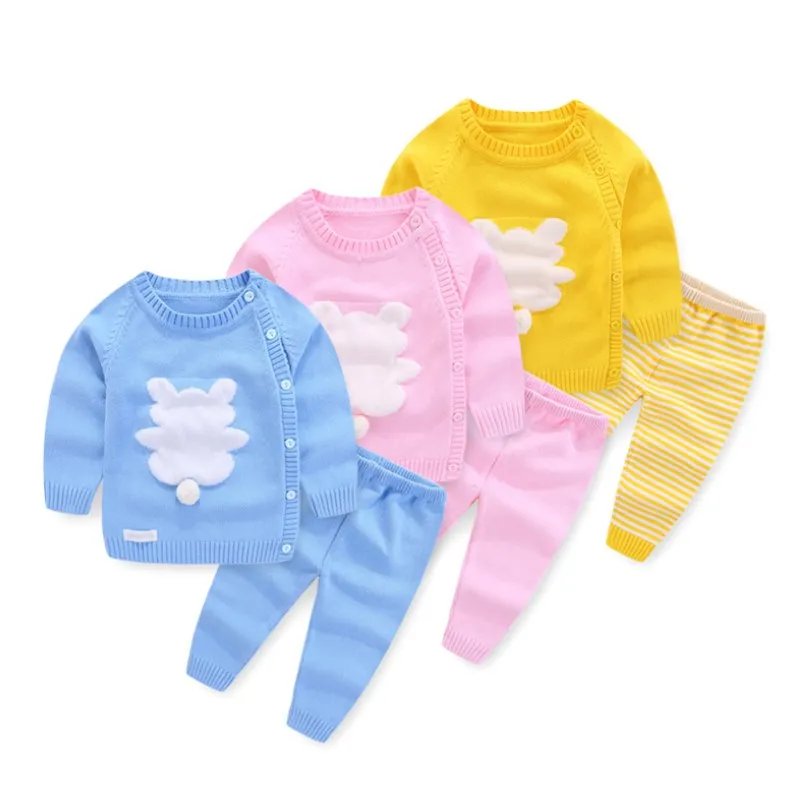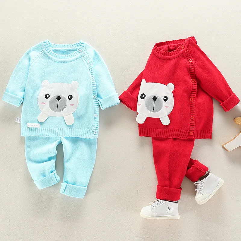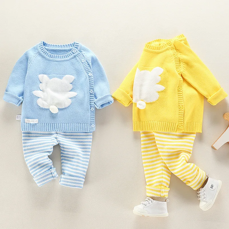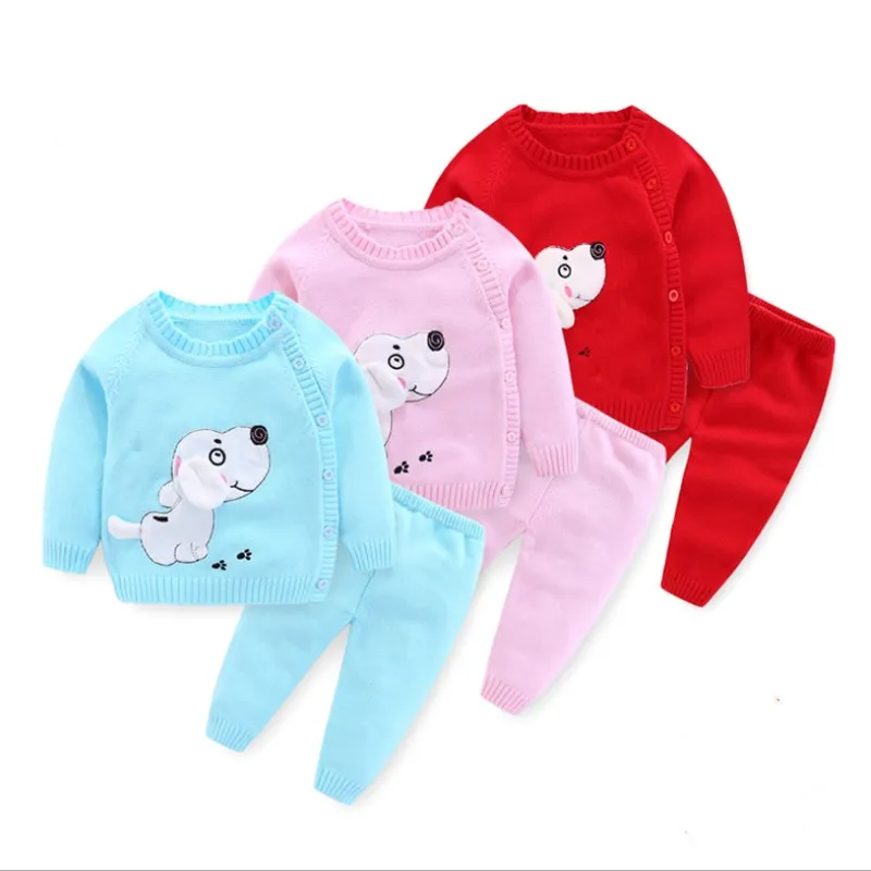 Special Offer Niemowlę dziecko ubrania sweter z dzianiny zestaw dziecko znosić na wiosnę jesień 2018 nowy maluch O neck kwiat zwierząt odzież garnitury Discount 46% Today!